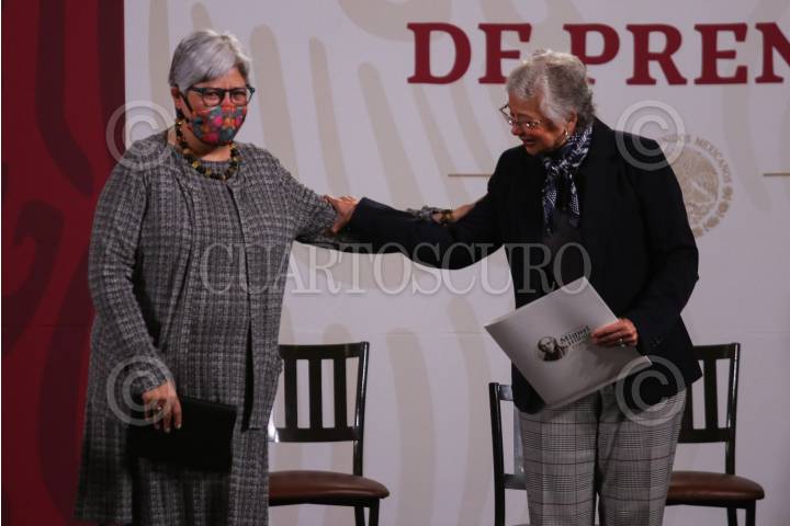 Graciela Márquez, secretaria de Economía, y Olga Sáncez Cordero, secretaria de Gobernación, durante la entrega de la condecoración Miguel Hidalgo a Jesús Seade Kuri.