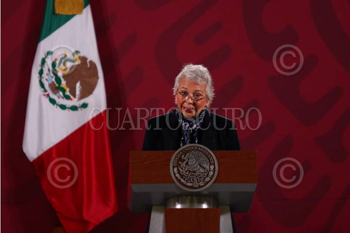 Olga Sáncez Cordero, secretaria de Gobernación, durante la entrega de la condecoración Miguel Hidalgo a Jesús Seade Kuri.