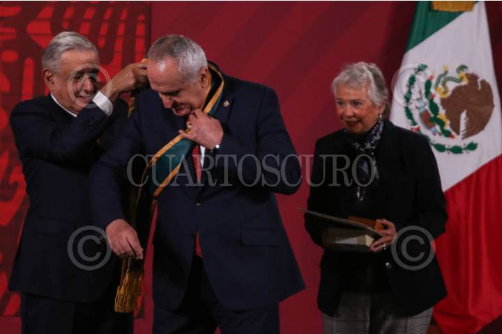 Jesús Seade Kuri fue condecorado con la banda Miguel Hidalgo por su participación en la firma del T-MEC