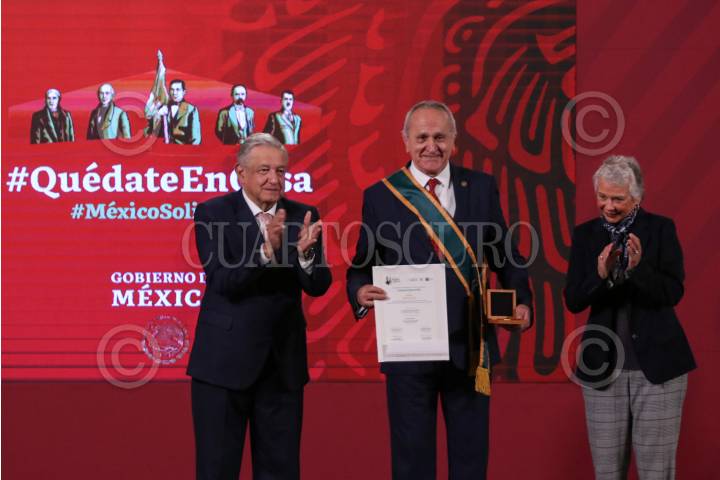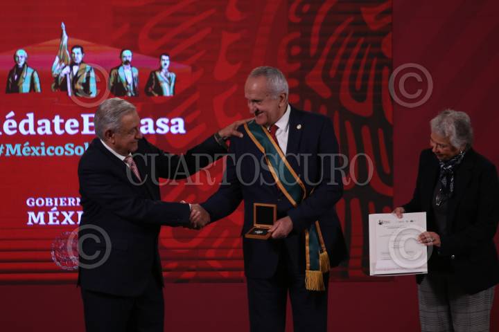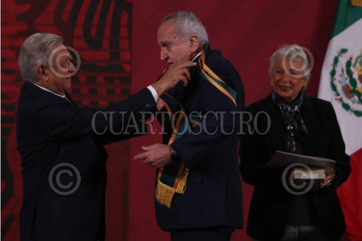 Andrés Manuel López Obrador durante la entrega de la condecoración Miguel Hidalgo a Jesús Seade Kuri.