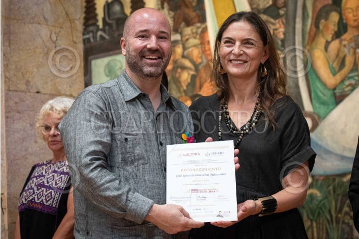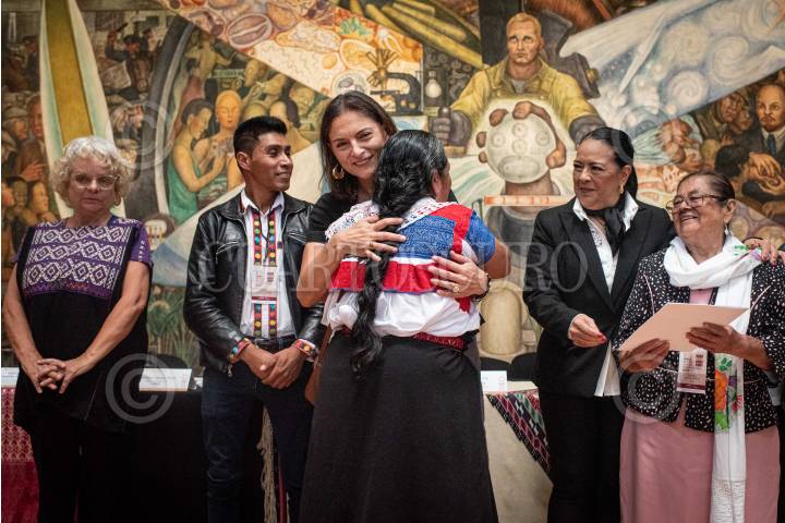 CIUDAD DE MÉXICO, 09AGOSTO2024.- Se llevó a cabo, en el Palacio de Bellas Artes, la ceremonia de premiación e inauguración de la expoventa de la "XI Edición del Concurso Nacional Grandes Maestras y Maestros del Patrimonio Artesanal de México 2024". En el acto estuvo presidido por La Subsecretaria de Desarrollo Cultural de la Secretaría de Cultura federal, Marina Núñez Bespalova; la directora general del Fonart, Emma Yanes Rizo; la directora general del Inbal, Lucina Jiménez López, y la directora de Fomento Cultural Citibanamex, A.C., Cándida Fernández de Calderón. FOTO: PEDRO ANZA /CUARTOSCURO.COM