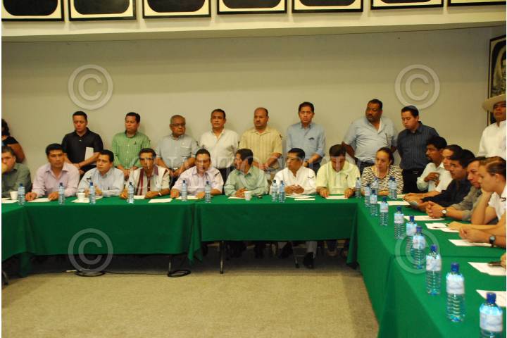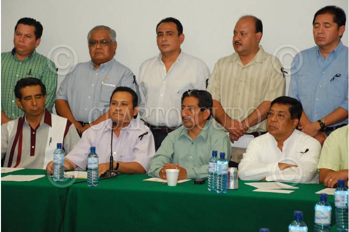 CHILPANCINGO, GUERRERO, 20AGOSTO2009.- Diputados del Congreso local de Guerrero, encabezados por el presidente de la mesa directiva y coordinador de la fracción parlamentaria del PRI Hector Vicario Castrejon, durante la conferencia de prensa que ofrecieron en las instalaciones del poder legislativo, donde condena el artero asesinato de Armando Chavarria Barrera, quien fuera presidente de la comisión de gobierno del Congreso local, ocurrido la mañana de este jueves, demandando el pronto esclarecimiento de estos lamentables hechos que enlutan a la clase politica de la entidad. FOTO: OSCAR ALVARADO/CUARTOSCURO.COM