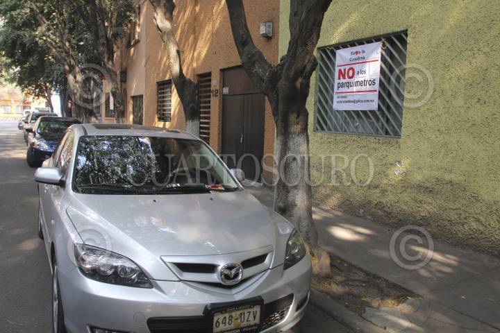 MÉXICO, D.F., 17ENERO2013.- Vecinos de la colonia Condesa, colocaron mantas en contra de la instalación de parquimetros en calles de la colonias Roma y Condesa. FOTO: SAÚL LÓPEZ /CUARTOSCURO.COM