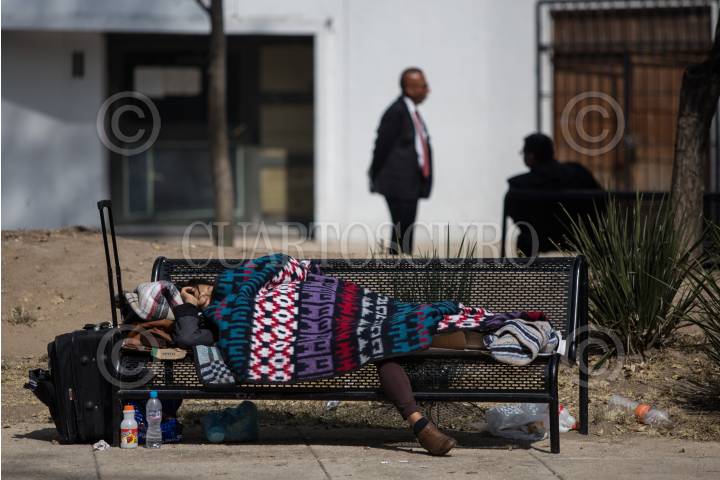 CIUDAD DE MÉXICO, 14DICIEMBRE2017.- Mujer en condición de calle duerme en una de las bancas de la Plaza Louis Pasteur. FOTO: ADOLFO VLADIMIR /CUARTOSCURO.COM