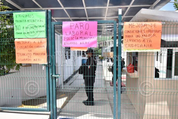 Elementos de las corporaciones de la Policía y Tránsito del Municipio de Eduardo neri se declararon en paro de labores para demandar a las autoridades que les doten de los insumos necesarios para poder desempeñar su labor.