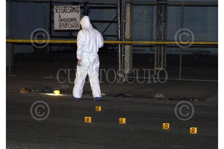 SAN NICOLAS DE LOS GARZA, NUEVO LEON 21ENERO2008.- El Juez Tercero de lo Penal, Ernesto Palacios López, fue ejecutado hoy con disparos de arma calibre .223 cuando conducía por la Avenida Manuel L. Barragán. El vehículo marca Jeep Rubicon y con placas RXM 2944, terminó impactado en el camellón central y tenía destrozado los vidrios laterales de ambos lados, mientras que Palacios López quedó en el asiento del conductor, en base a los primeros informes de la Policía Ministerial. La ejecución número tres en lo que va del año, fue cometida frente a la empresa Ponderosa, en la Colonia Valles de Anáhuac. Peritos de la Procuraduría General de Justicia acordonaron el área donde quedó el vehículo y los casquillos esparcidos. FOTO: PEDRO KRISTIAN LOPEZ/CUARTOSCURO.COM