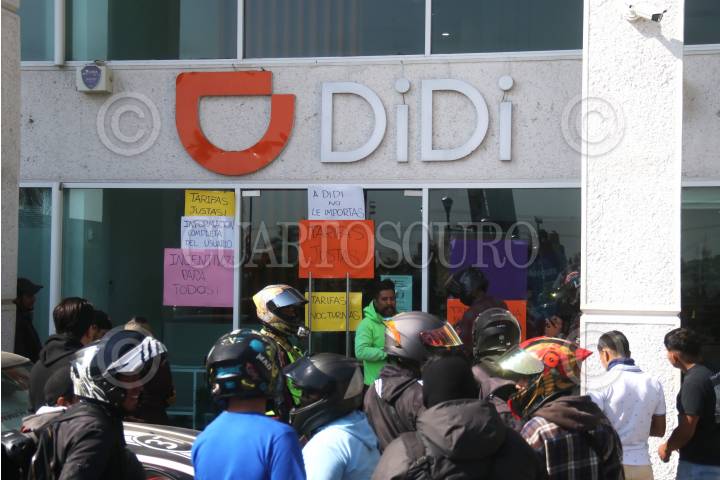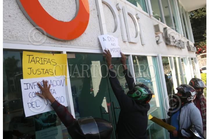 CUERNAVACA, MORELOS, 30DICIEMBRE2024.- Conductores de motocicletas que operan en la plataforma DIDI, clausuraron simbólicamente las oficinas en la capital y bloquearon la avenida Domingo Diez en protesta por las tarifas "excesivamente bajas establecidas por la plataforma", las cuales no alcanzan para cubrir sus necesidades básicas. Los últimos ajustes a las tarifas los ha afectado, ya que los impuestos que les cobran son muy altos. FOTO: MARGARITO PÉREZ RETANA/CUARTOSCURO.COM