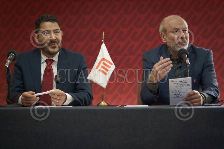 Guillermo Calderón, director del general del Sistema de Transporte Colectivo (STC) Metro, y Martí Batres, secretario de Gobierno, ofrecieron conferencia para explicar incidentes y problemas registrados en los últimos días en el metro.