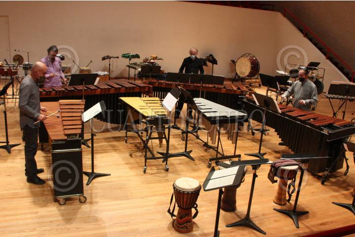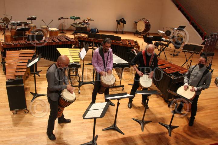 Ensayo del “Concierto 28 aniversario a cargo de Tambuco, ensamble de percusiones de México”.