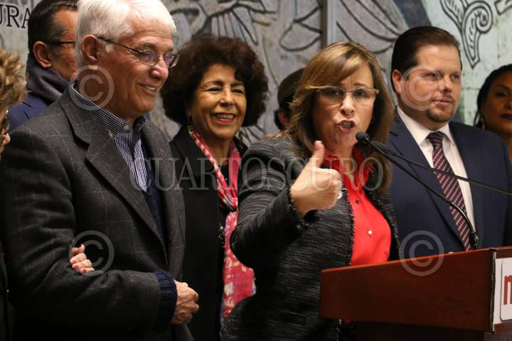 CUERNAVACA, MORELOS, 07AGOSTO2025.- Luisa María Alcalde Luján, presidenta del Comité Ejecutivo Nacional del Movimiento de Regeneración Nacional, sostuvo un encuentro con medios de comunicación en el que anunció la creación de los Comités Seccionales de Defensa de la Transformación. La dirigente nacional estuvo acompañada por Carolina Rangel Gracida, secretaria general; Mirsa Berenice Suárez Maldonado, presidenta del Comité Ejecutivo Estatal de Morelos; el senador Víctor Mercado, y el diputado local Rafael Reyes. FOTO: MARGARITO PÉREZ RETANA/CUARTOSCURO.COM