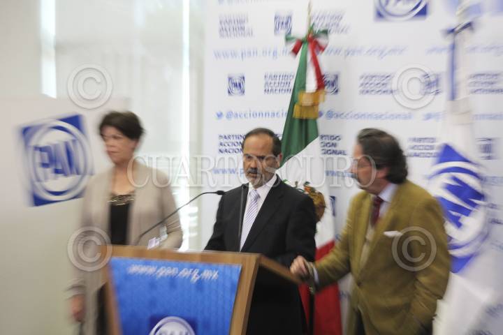 MÉXICO D.F., 09JULIO2013.- Gustavo Madero, presidente del PAN acompañado de Cecilia Romero y Juan Molinar Horcasitas, en conferencia de prensa dio detalles de los resultados de los comicios del pasado siete de Julio y aseguró la victoria de la alianza "Unidos por Baja California". FOTO: SAÚL LÓPEZ /CUARTOSCURO.COM