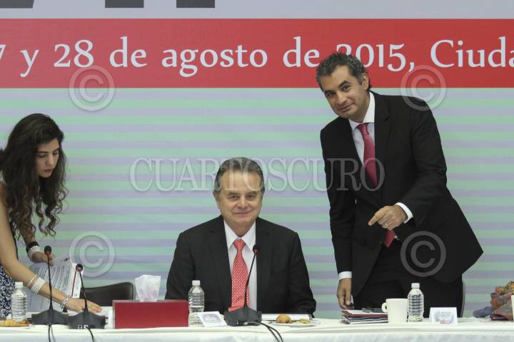 MÉXICO, D.F., 28AGOSTO2015.- Pedro Joaquín Codlwel, Secretario de Energía y Enrique Ochoa Reza, Director General de la Comisión Federal de Electricidad, durante la VII Reunión Plenaria de los senadores del PRI y PVEM. FOTO: ADOLFO VLADIMIR /CUARTOSCURO.COM