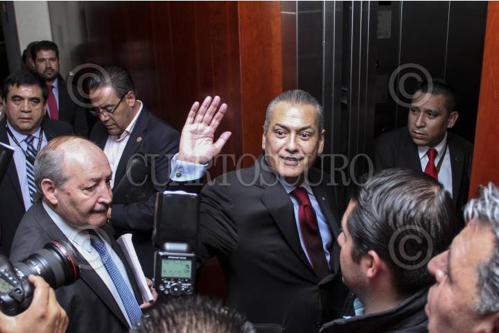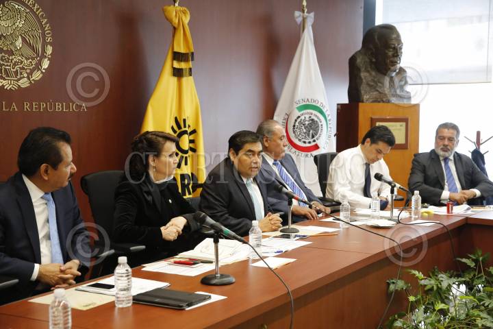 CIUDAD DE MÉXICO, 14JUNIO2016.- Miguel Barbosa, coordinador parlamentario del Partido de la Revolución Democrática, realizaron una conferencia para mostrar su postura frente al proyecto de dictamen que expide leyes secundarias en materia de combate a la corrupción. FOTO: SENADO /CUARTOSCURO.COM
