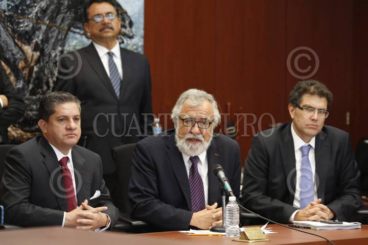 CIUDAD DE MÉXICO, 14JUNIO2016.- Alejandro Encinas , senador por el PRD y Presidente de la Comisión de Puntos Constitucionales, durante la conferencia para mostrar su postura frente al proyecto de dictamen que expide leyes secundarias en materia de combate a la corrupción. FOTO: SENADO /CUARTOSCURO.COM