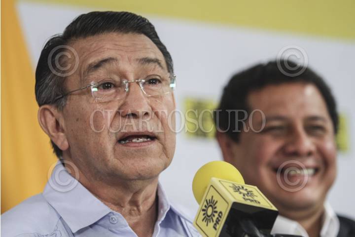 CIUDAD DE MÉXICO, 24JUNIO2016.- Agustín Basave, presidente nacional del PRD acompañado del gobernador electo de Quintana Roo, Carlos Manuel Joaquín ofreció una conferencia de prensa al termino de la reunión que sostuvieron con la dirigencia del sol azteca. FOTO: SAÚL LÓPEZ /CUARTOSCURO.COM