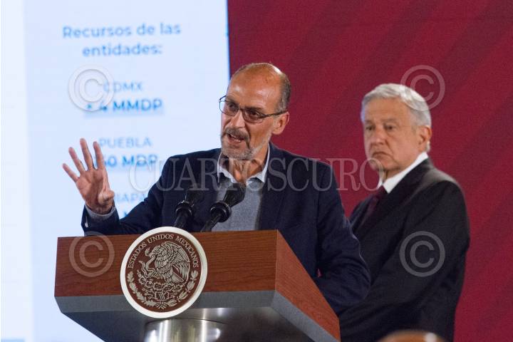 CIUDAD DE MÉXICO, 18SEPTIEMBRE2019.- Andrés Manuel López Obrador, Presidente de México, encabezo la conferencia mañanera en Palacio Nacional, lo acompañaron Arturo Herrera, secretario de Energía; David Cervantes, encargado del Plan de Reconstrucción Nacional, y Román Meter Falcón, titular de la SEDATU. FOTO: VICTORIA VALTIERRA /CUARTOSCURO.COM