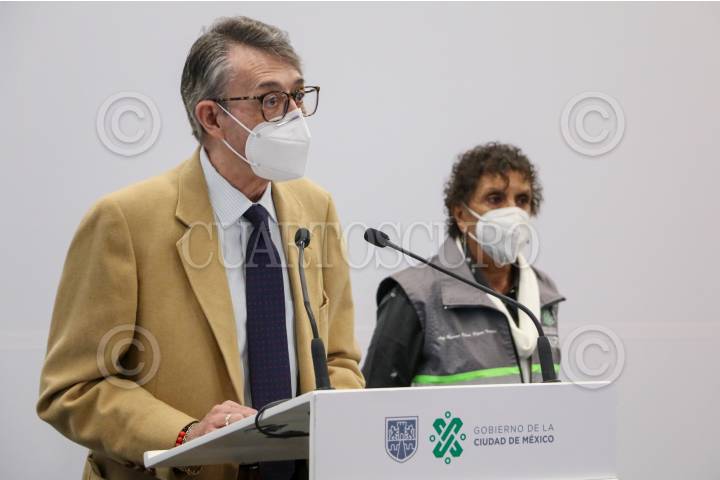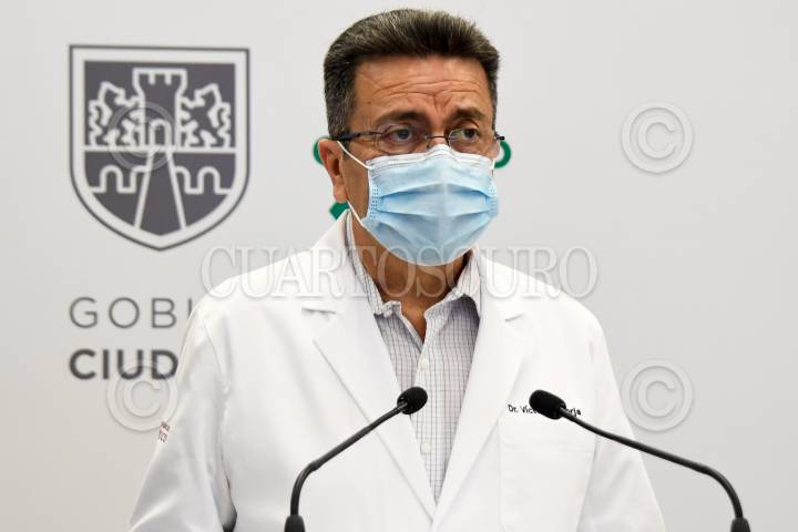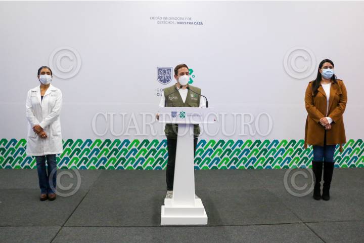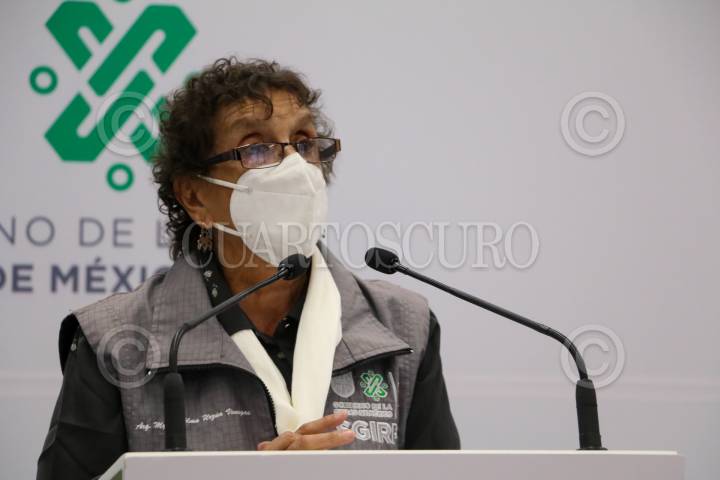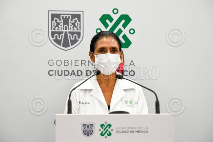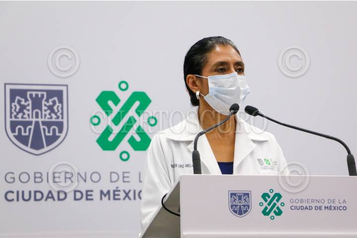 Oliva López, titular de la Secretaria de Salud de la Ciudad, durante la conferencia de prensa de la Jefatura de Gobierno.