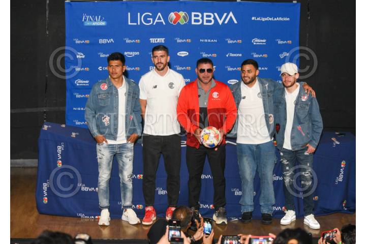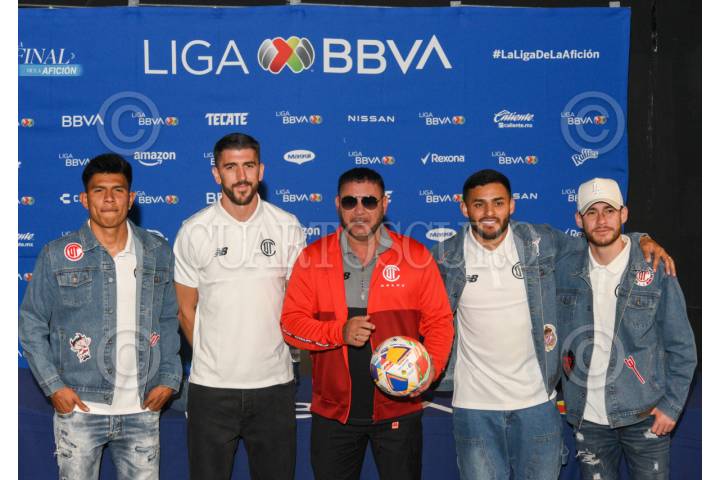 TOLUCA, ESTADO DE MÉXICO, 21MAYO2025.- Durante el Día de Medios de la Final del Torneo Clausura 2025 de la Liga BBVA MX fue exhibido el trofeo que se llevará el Campeón del Clausura 2025, conferencia de prensa con Antonio Mohamed D.T. del Club Toluca, Alexis Vega, Joao Dias Paulinho y Jesus Gallardo jugadores de los Diablos Toluca. FOTO: CRISANTA ESPINOSA AGUILAR /CUARTOSCURO.COM