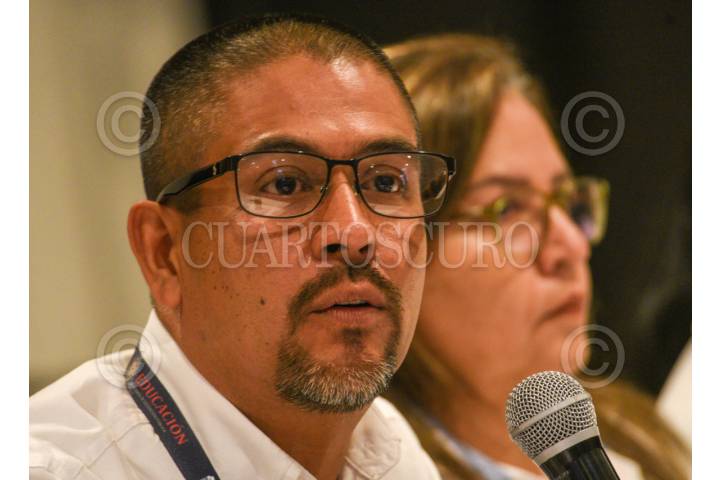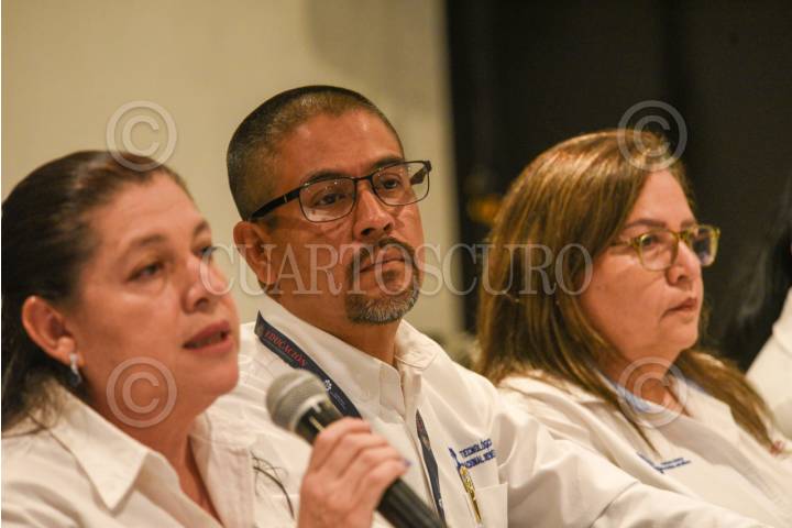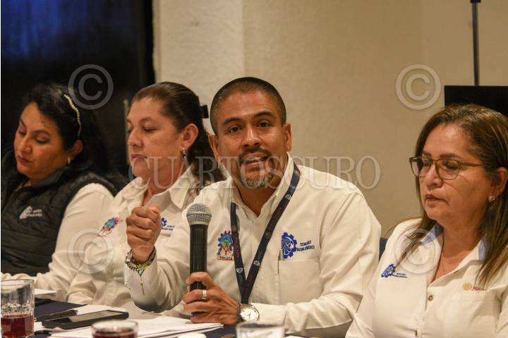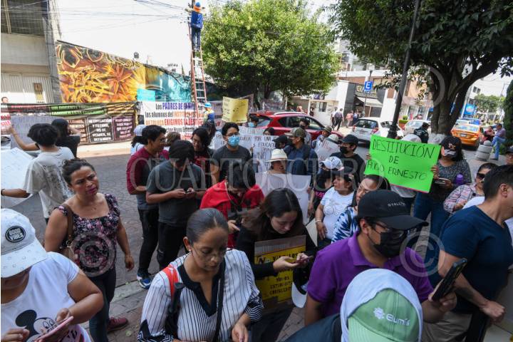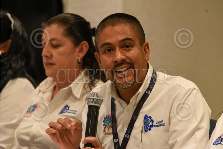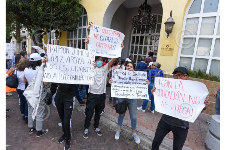 TOLUCA, ESTADO DE MÉXICO, 16ABRIL2024.- Hugo Ernesto Cuéllar, director del Instituto Tecnológico de Toluca ofreció una conferencia de prensa en donde negó cada uno de los señalamientos por los cuales piden su renuncia alumnos, padres de familia y maestros, acompañado de su cuerpo directivo, indicó que no tiene la menor intención de entregar su renuncia; mientras a las afueras del hotel en donde ofreció la conferencia de prensa, un grupo de estudiantes y padres de familia se manifestaron y pidieron audiencia con las autoridades escolares, que desde que inició el paro no han tenido. FOTO: CRISANTA ESPINOSA AGUILAR /CUARTOSCURO.COM