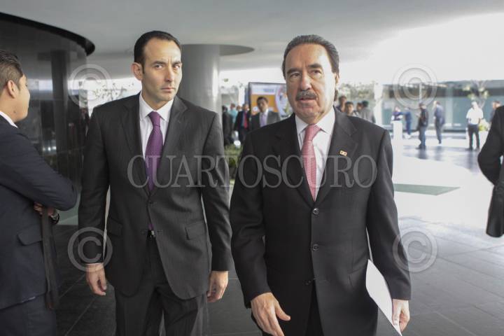 MÉXICO, D.F., 05DICIEMBRE2013.- Roberto Gil Zuarth, Senador por PAN y Emilio Gamboa Patrón, Coordinador en el Senado de la bancada del PRI, en el recinto de la cámara alta, en donde dará inicio la discusión de la Reforma Energética. FOTO: CUARTOSCURO.COM