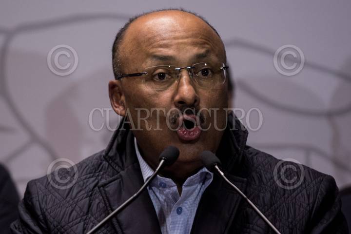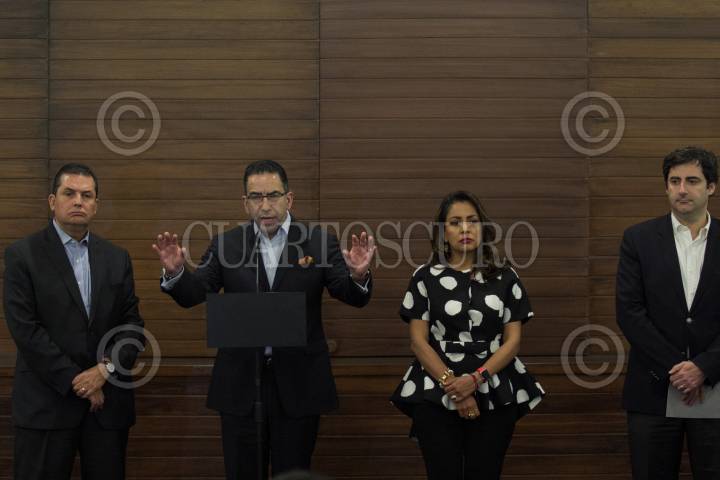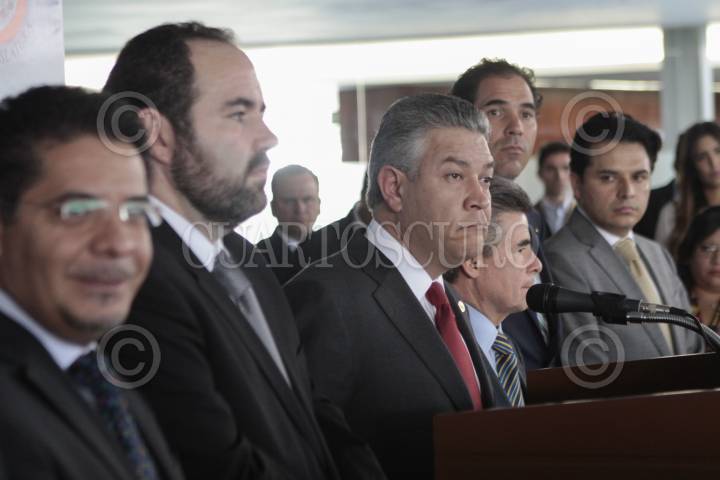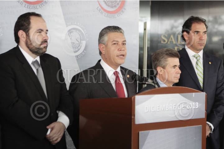 MÉXICO, D.F., 05DICIEMBRE2013.- David Penchyna Grub, presidente de la Comisión de Energía, en compañía de los integrantes de la misma comisión, informaron que por un error en el procedimiento se convocó al análisis de la minuta de Reforma Energética para el día de hoy. La cita confirmada para el análisis es mañana a las 10:00 hrs. FOTO: CUARTOSCURO.COM
