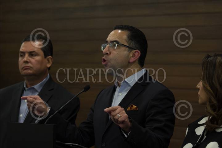CIUDAD DE MÉXICO, 21FEBRERO2018.- Javier Lozano, vocero de la campaña de José Antonio Meade, encabezó la conferencia de prensa para anunciar el deslinde total de las acusaciones en contra de Ricardo Anaya, candidato a la presidencia por la coalición “Por México al Frente”, de enriquecimiento ilícito a través de empresas fantasma en el estado de Querétaro. Lozano Alarcón llamó al candidato de la coalición a hacerse responsable de sus actos y de enfrentar a la justicia como es debido. FOTO: GALO CAÑAS /CUARTOSCURO.COM