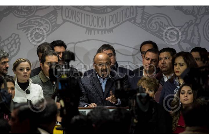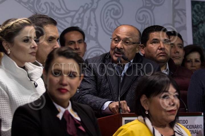 CIUDAD DE MÉXICO, 23DICIEMBRE2018.- René Juárez Cisneros, coordinador de la bancada priista, encabezó la conferencia de prensa para posicionarse en contra del presupuesto federal 2019, el cual se discutirá en el pleno de la Cámara Baja. FOTO: GALO CAÑAS /CUARTOSCURO.COM