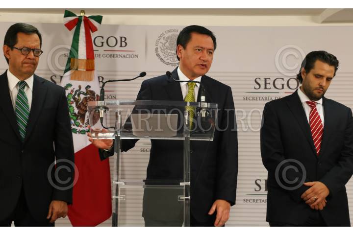 CIUDAD DE MÉXICO, 05JULIO2016.- Miguel Ángel Osorio Chong Secretario de Gobernación, ofreció una conferencia de prensa donde anunció que recibieron una nueva propuesta por parte de líderes de la CNTE para buscar una alternativa de solución al conflicto magisterial. FOTO: SAÚL LÓPEZ /CUARTOSCURO.COM