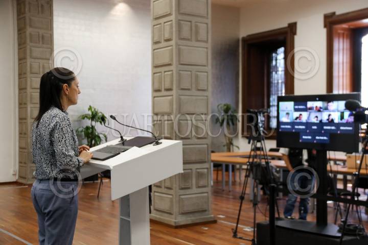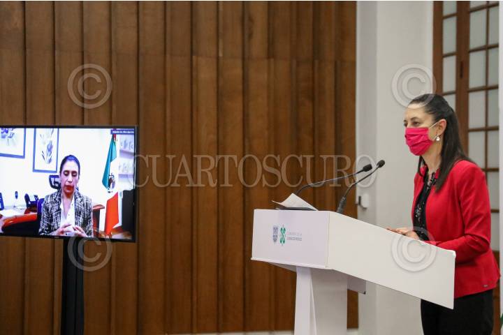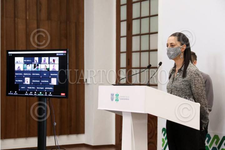 Claudia Sheinbaum, Jefa de Gobierno, participó en la conferencia vía remota desde su casa en donde está en cuarentena tras dar positiva por Covid-19.