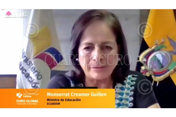 Montserrat Creamer Guillen, Ministra de Educación, Ecuador, durante su participación en el foro "Educación en y para la democracia".