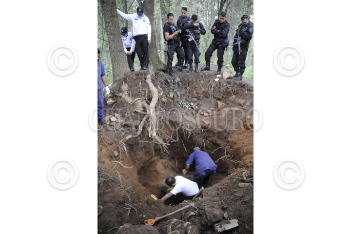 HUIXQUILUCAN, ESTADO DE MEXICO, 27JULIO2012.- Elementos de la policía y forense continúan con la búsqueda de cuerpos después de la confesión de uno de los sicarios, quienes argumentan que enterraron cadáveres en diferentes zonas del poblado de San Juan Yautepec. FOTO: LUIS CARBAYO /CUARTOSCURO.COM