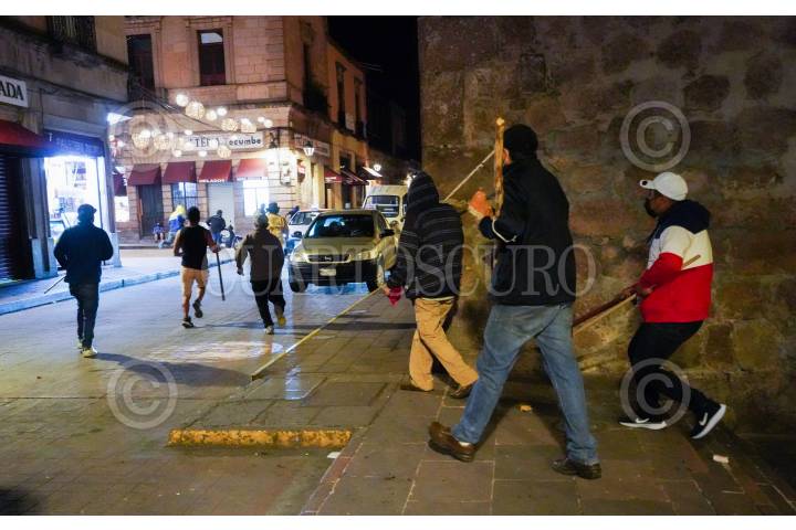 Enfrentamiento entre normalistas y elementos de la policía michoacana.