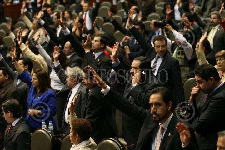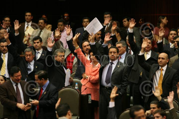 MÉXICO D.F.13MARZO2008.-Sesión ordinaria en la Cámara de Diputados donde se voto a favor para la conformación de la comision especial para investigar los contratos de PEMEX con particulares.En la imagen los diputados del PRI, emiten su voto durante la sesión. FOTO:GUILLERMO PEREA/CUARTOSCURO.COM