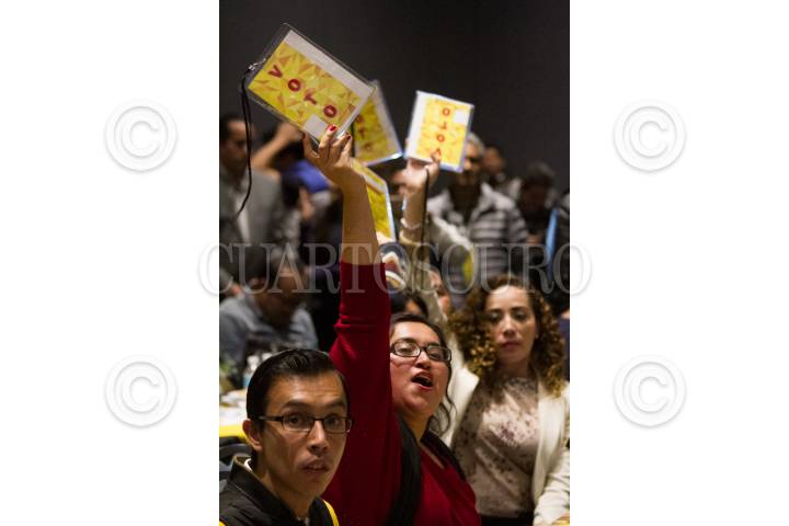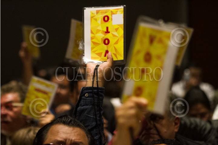 CIUDAD DE MÉXICO, 19NOVIEMBRE2017.- Votación en contra de la conformación del Frente Ciudadano, en el que participan el PRD, Movimiento Ciudadano y PAN, durante la celebración del Consejo Nacional del Partido de la Revolución Democrática. FOTO: MOISÉS PABLO /CUARTOSCURO.COM