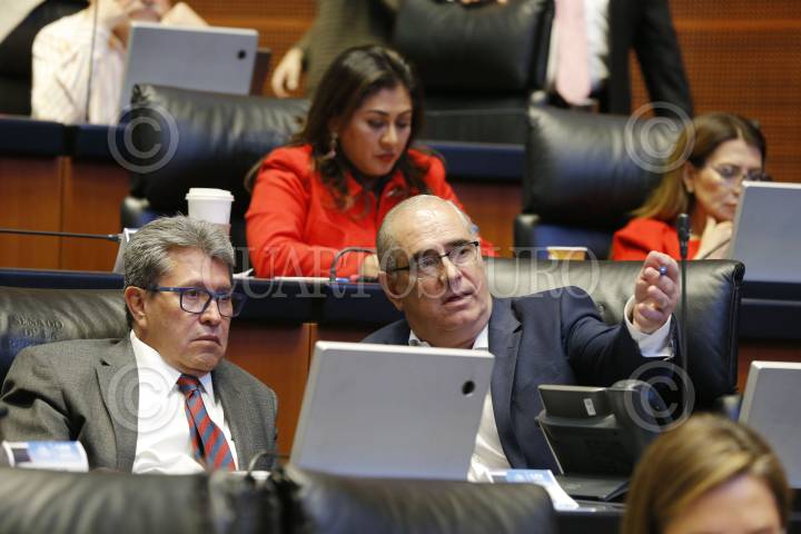 Ricardo Monreal y Julen Rementería durante la sesión en la cual se discutió la muerte de 39 migrantes muertos en Ciudad Juárez durante un incendio en una estación migratoria.