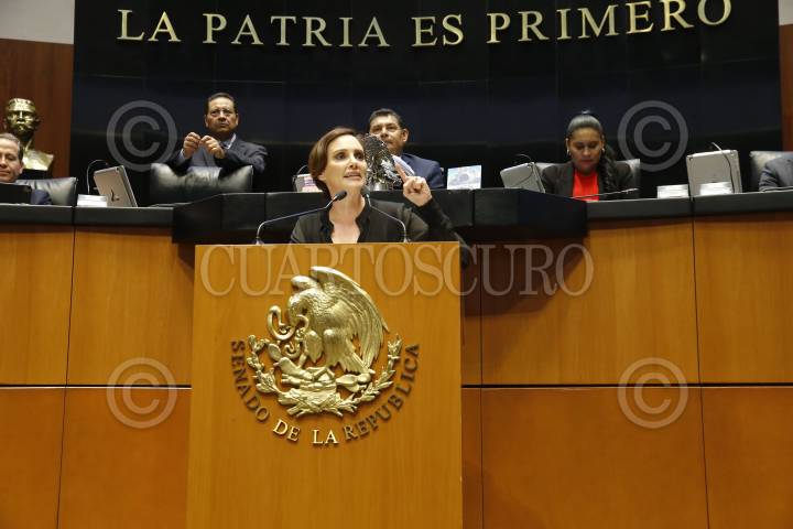 Lilly Téllez, senadora del PAN, durante la discusión por la muerte de 39 migrantes en Ciudad Juárez.