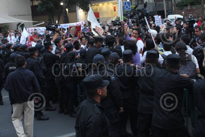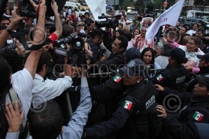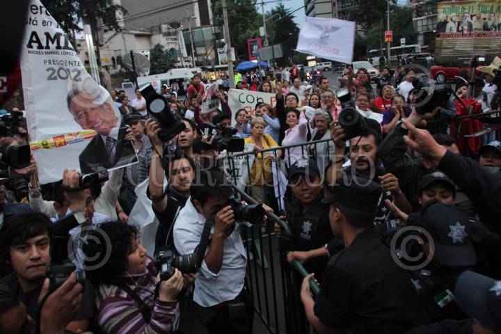 MÉXICO, D.F., 06MAYO2012.- Simpatizantes de los candidatos a la presidencia de la República se confrontaron a palabras frente al WTC donde se lleva a cabo el debate entre los aspirantes a la presidencia de la república. FOTO: ENRIQUE ORDOÑEZ/CUARTOSCURO.COM