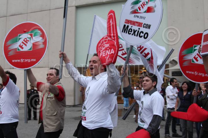 MÉXICO, D.F., 06MAYO2012.- Seguidores de los cuatro candidatos a la presidencia se manifestaron en los alrededores del WTC donde se lleva a cabo el debate entre los aspirantes a la presidencia de la república. FOTO: ENRIQUE ORDOÑEZ/CUARTOSCURO.COM