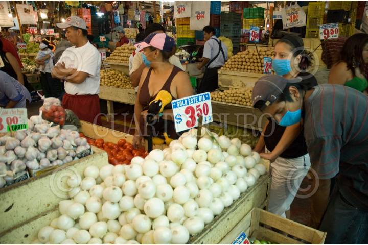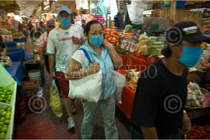 MÉXICO, D.F., 01MAYO2009.- Personas acuden con cubre bocas al mercado de la Merced a realizar compras de la canasta básica; el uso del cubre bocas en áreas en donde se congregan muchas personas se recomienda como medida para evitar la propagación del virus de la influenza humana AH1N1. FOTO: RODOLFO ANGULO/CUARTOSCURO.COM