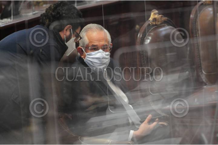 CIUDAD DE MÉXICO, 05FEBRERO2019.- Alejandro Encinas, actual subsecretario de Derechos Humanos de la SEGOB, y Bernardo Batiz, ex diputado constituyente, durante la ceremonia solemne con motivo del 102 aniversario de la Constitución Política de 1917, así como el segundo aniversario de la Constitución de la Ciudad de México. FOTO: GALO CAÑAS /CUARTOSCURO.COM