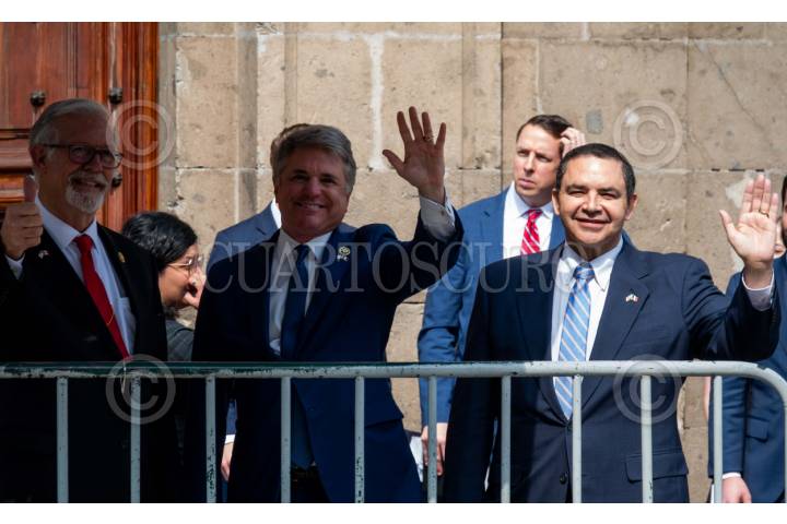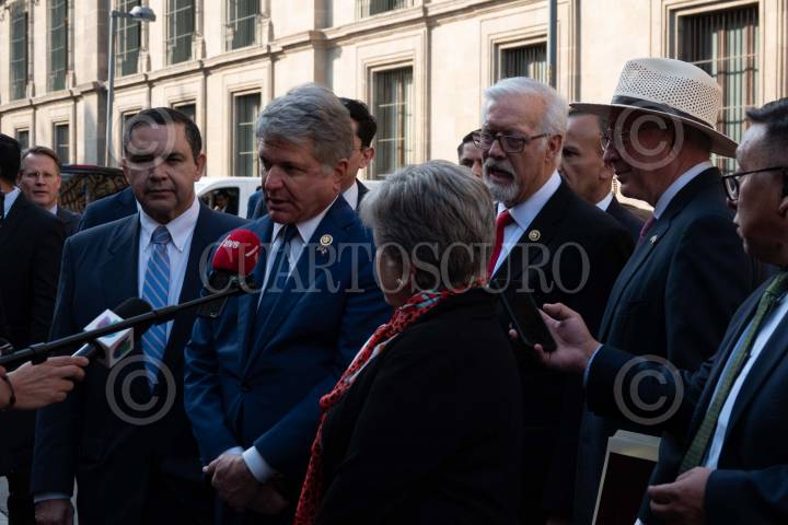 CIUDAD DE MÉXICO, 23ENERO2024.- Los congresistas Henry Cuéllar, Michael McCaul, el embajador Ken Salazar y el congresista Randy Weber tras la reunión con el presidente Andrés Manuel López Obrador en Palacio Nacional. FOTO: GALO CAÑAS/CUARTOSCURO.COM