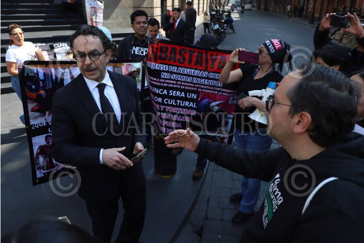 CIUDAD DE MÉXICO, 05FEBRERO2025.- Manifestantes antitaurinos encararon al panista Gabriel Quadri, quién se ha declarado a favor de las corridas de Toros. FOTO: DANIEL AUGUSTO/ CUARTOSCURO.COM