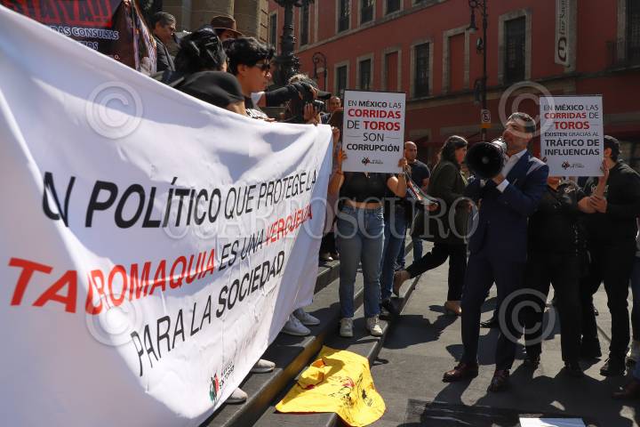 CIUDAD DE MÉXICO, 05FEBRERO2025.- Integrantes del Movimiento México sin Toreo se manifestaron afuera del congreso capitalino en contra de las corridas de toros. FOTO: DANIEL AUGUSTO/ CUARTOSCURO.COM