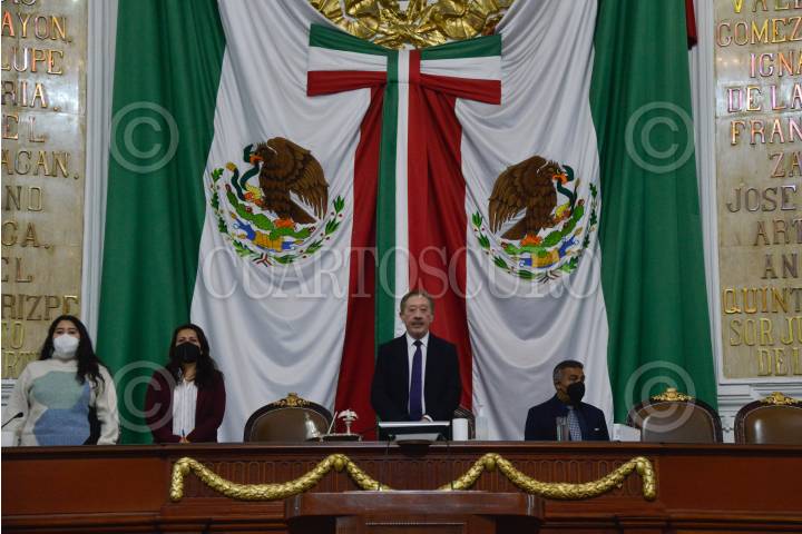 Héctor Díaz Polanco, presidente de la mesa directiva, durante la sesión solemne del Congreso de la Ciudad de México en la que se realizó la entrega de las medallas al mérito "Hermina Galindo 2021".