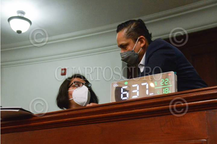Fueron instalados medidores de concentración de dióxido de carbono (Co2) en el salón de sesiones del Congreso de la Ciudad de México como parte de las medidas preventivas implementadas durante la pandemia de covid-19.
