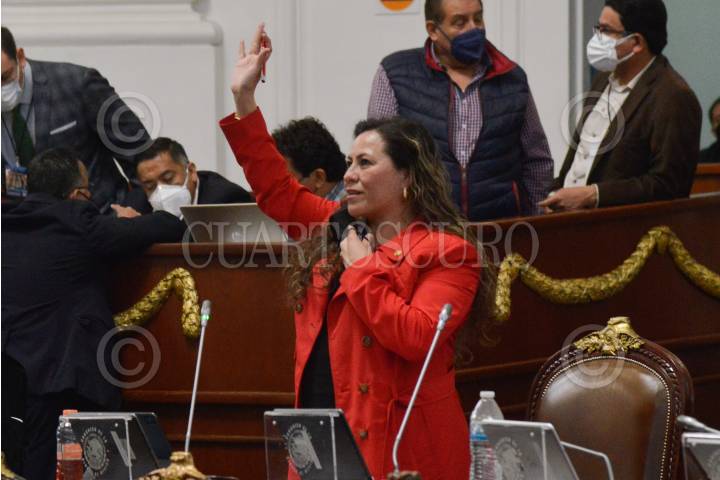 Martha Ávila Ventura, diputada local y coordinadora de Morena, durante la sesión solemne del Congreso de la Ciudad de México en la que se realizó la entrega de las medallas al mérito "Hermina Galindo 2021".