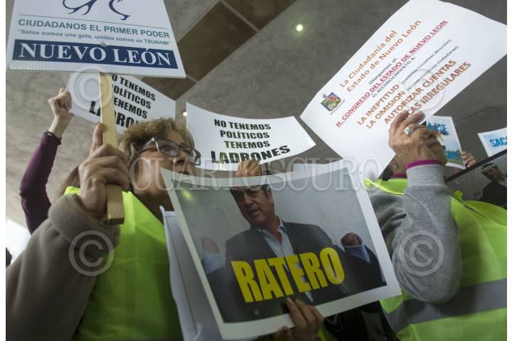 MONTERREY, NUEVO LEÓN, 31DICIEMBRE2018.- Miembros del Congreso Nacional Ciudadano protestaron en las calles del centro contra el aumento vehicular en 2019. Diputados de todos los partidos políticos en el Congreso local votaron a favor de los cobros, los cuales serían los más caros del país. FOTO: GABRIELA PÉREZ MONTIEL /CUARTOSCURO.COM