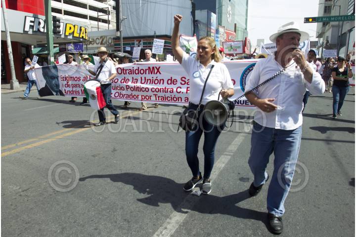 MONTERREY, NUEVO LEÓN, 15SEPTIEMBRE2019.- El Congreso Nacional Ciudadano, liderados por Gilberto Lozano, organizó una marcha nacional en contra del presidente Andrés Manuel López Obrador, exigiendo un juicio político y destitución de su cargo. FOTO: GABRIELA PÉREZ MONTIEL /CUARTOSCURO.COM