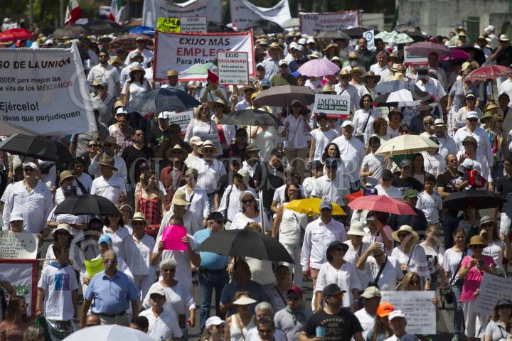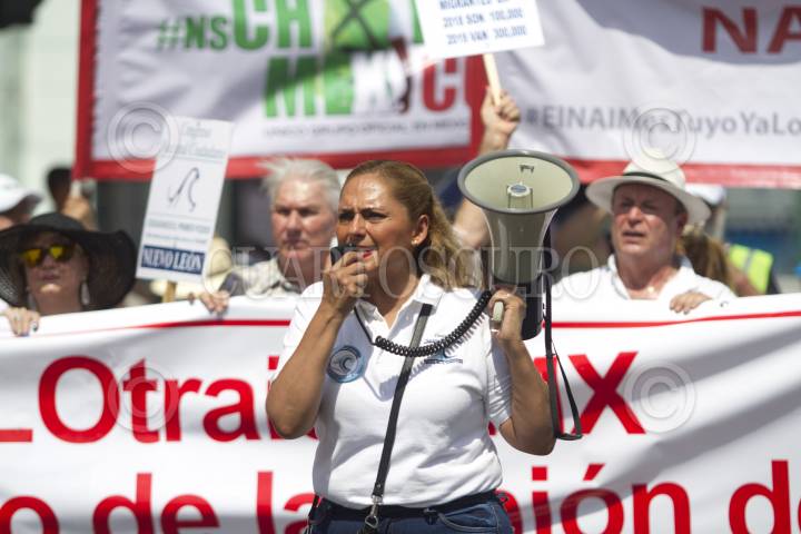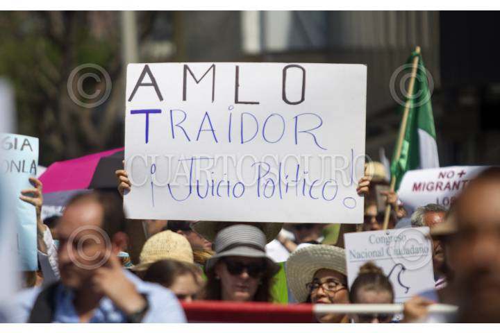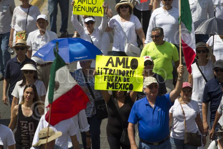 MONTERREY, NUEVO LEÓN, 30JUNIO2019.- Cientos de personas se congregaron en la Explanda de los Héroes para marchar por las principales calles de la ciudad en contra del gobierno de Andrés Manuel López Obrador, misma que se estaría realizando simultáneamente en más de 20 ciudades de México, Estados Unidos, Alemania y Canadá. La protesta fue encabezada por Gilberto Lozano, fundador del Congreso Nacional Ciudadano. FOTO: GABRIELA PÉREZ MONTIEL /CUARTOSCUR.OCOM