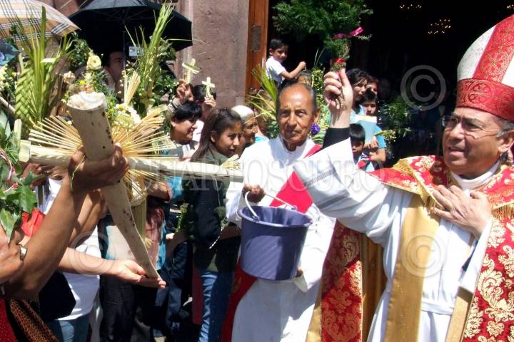 SAN LUIS POTOSÍ, SAN LUIS POTOSÍ, 28MARZO2010.- Con una procesión hasta la Catedral de la cuidad encabezada por el obispo de la diócesis de San Luis Potosí Luis Morales Reyes se conmemoró la tradicional ceremonia del Domingo de Ramos. FOTO: MARCELO PALACIOS/CUARTOSCURO.COM